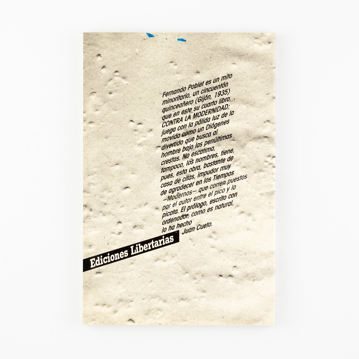 Fernando Poblet es un mito minoritario, en este su cuarto libro juega con la pálida luz de la movida como un Diógenes divertido que busca al hombre bajo las penúltimas crestas. No escatima, tampoco, los nombres, tiene, pues, esta obra, bastante de casa de citas, impudor muy de agradecer en los Tiempos -Modernos- que corren puestos por el autor entre el pico y la picota. El prólogo, escrito con ordenador, como es natural, lo ha hecho Juan Cueto.