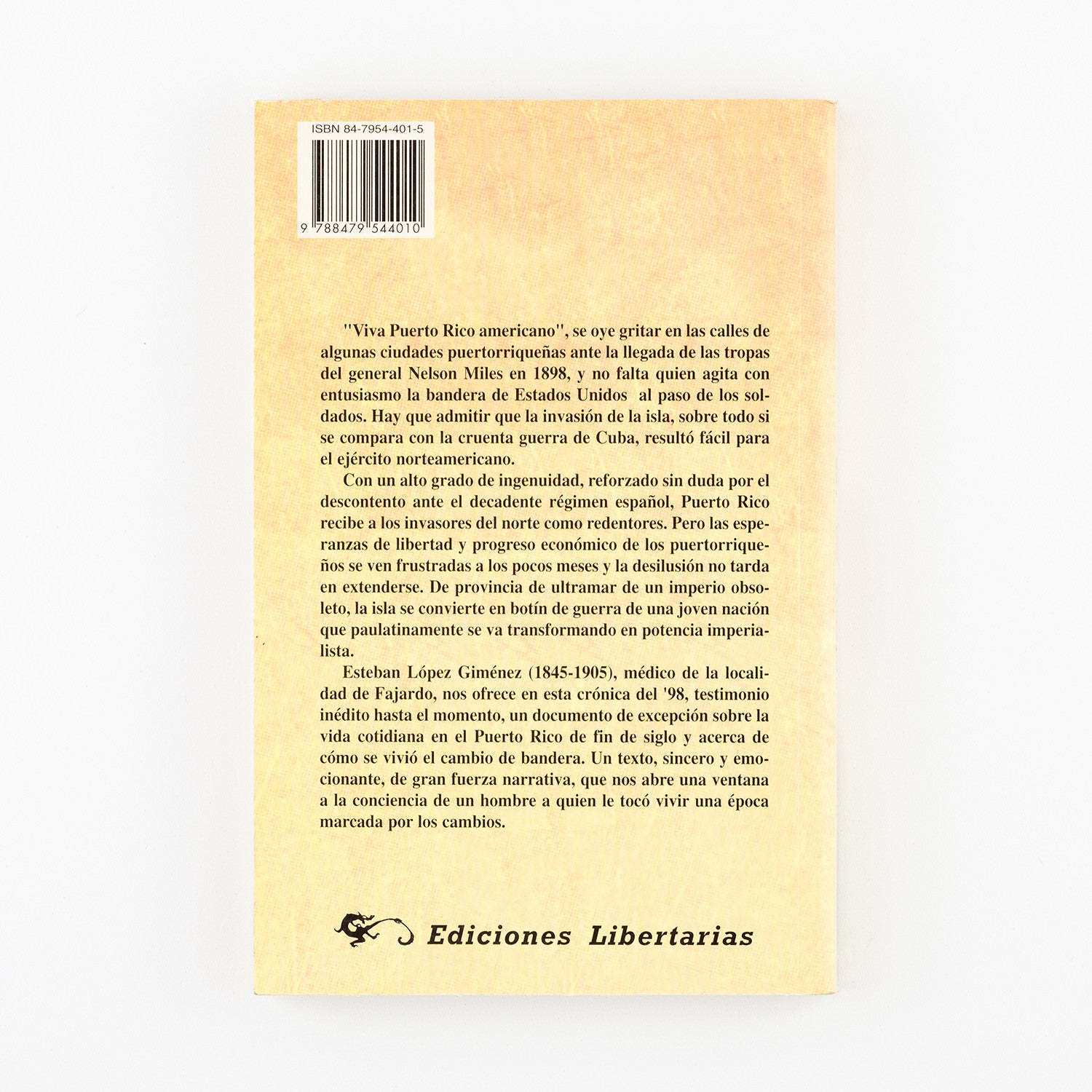 Estebán López Giménez (1845-1905), médico de la localidad de Fajardo, nos ofrece en esta crónica del 98, testimonio inédito hasta el momento, un documento de excepción sobre la vida cotidiana en el Puerto Rico de fin de siglo y acerca de cómo se vivió el cambio de bandera. Un texto, sincero y emocionante, de gran fuerza narrativa, que nos abre una ventana a la conciencia de un hombre a quien le tocó vivir una época marcada por los cambios.