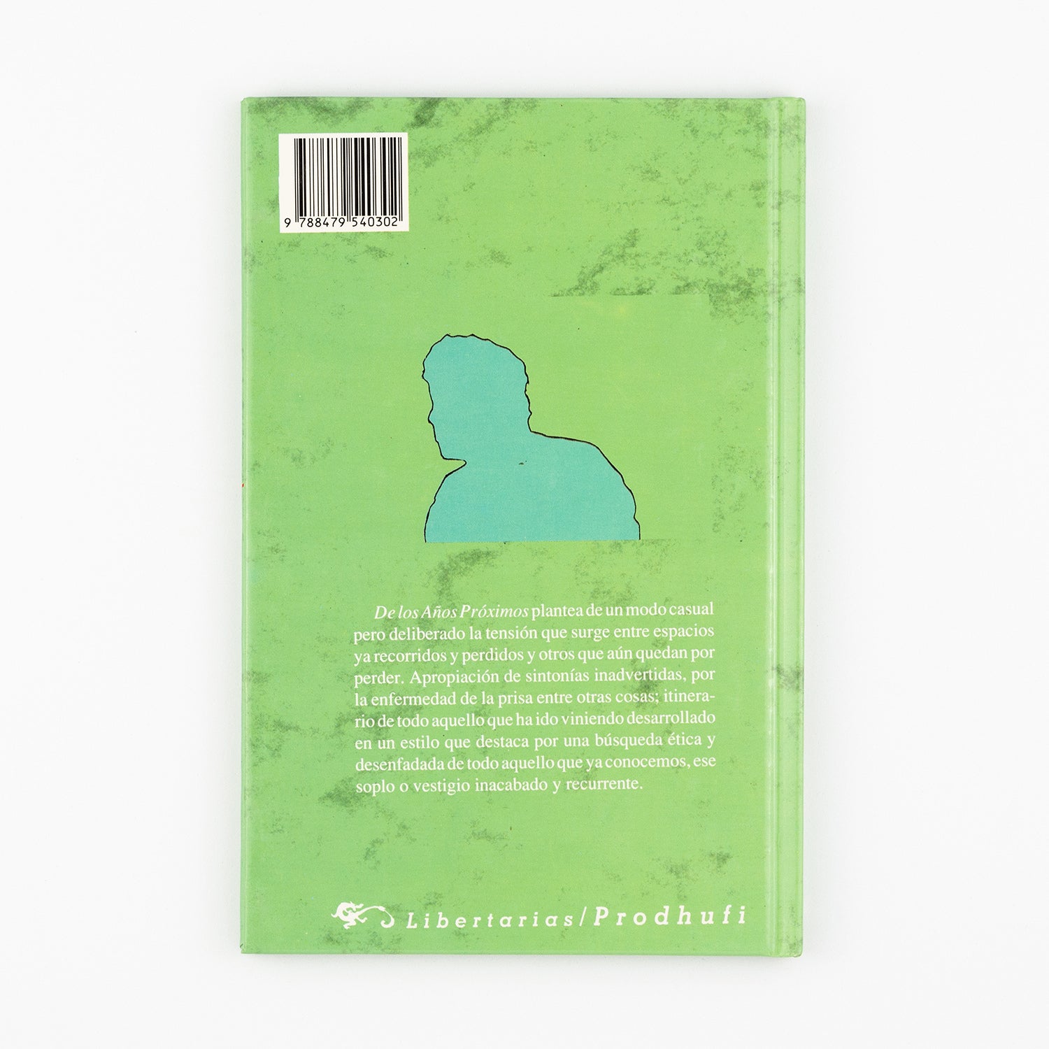 De los años próximos plantea de un modo casual pero deliberado la tensión que surge entre espacios ya recorridos y perdidos y otros que aún quedan por perder. Aproximación de sintonías inadvertidas, por la enfermedad de la prisa entre otras cosas; itinerario de todo aquello que ha ido viniendo desarrollado en un estilo que destaca por una búsqueda ética y desenfadada de todo aquello que ya conocemos, ese soplo o vestigio inacabado y recurrente.