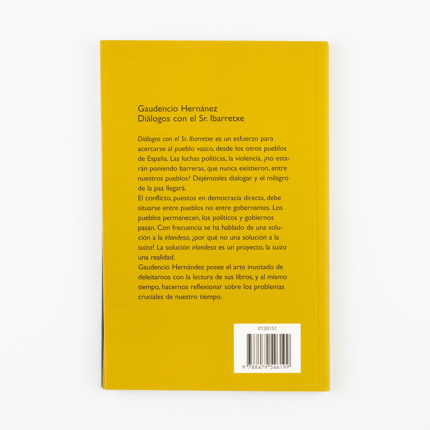 El autor, Gaudencio Hernández, posee el arte inusitado de deleitarnos con la lectura de sus libros, y al mismo tiempo, hacernos reflexionar sobre los problemas cruciales de nuestro tiempo. El libro Diálogos con el Sr. Ibarretxe, es un esfuerzo para acercarse al pueblo vasco, desde los otros pueblos de España. Las luchas políticas, la violencia, ¿no estarán poniendo barreras que nunca existieron, entre nuestros pueblos? Dejémosles dialogar y el milagro de la paz llegará. Con frecuencia se ha hablado de dar una solución a la irlandesa, ¿por qué no una solución a la suiza? La solución irlandesa es un proyecto, la suiza, una realidad.