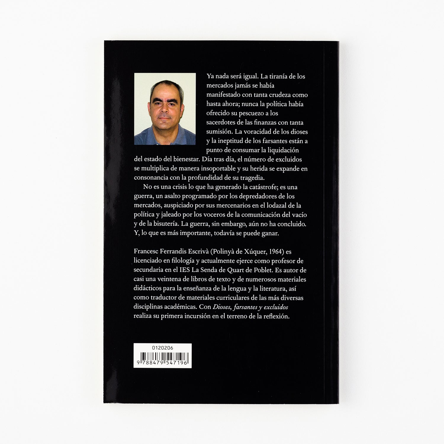 Francesc Ferrandis Escrivà (Polinyà de Xúquer, 1964) es licenciado en filología y actualmente ejerce como profesor de secundaria en el IES La Senda de Quart de Poblet. Es autor de casi una veintena de libros de texto y de numerosos materiales didácticos para la enseñanza de la lengua y la literatura, así como traductor de materiales curriculares de las más diversas disciplinas académicas. Con Dioses, farsantes y excluidos realiza su primera incursión en el terreno de la reflexión.