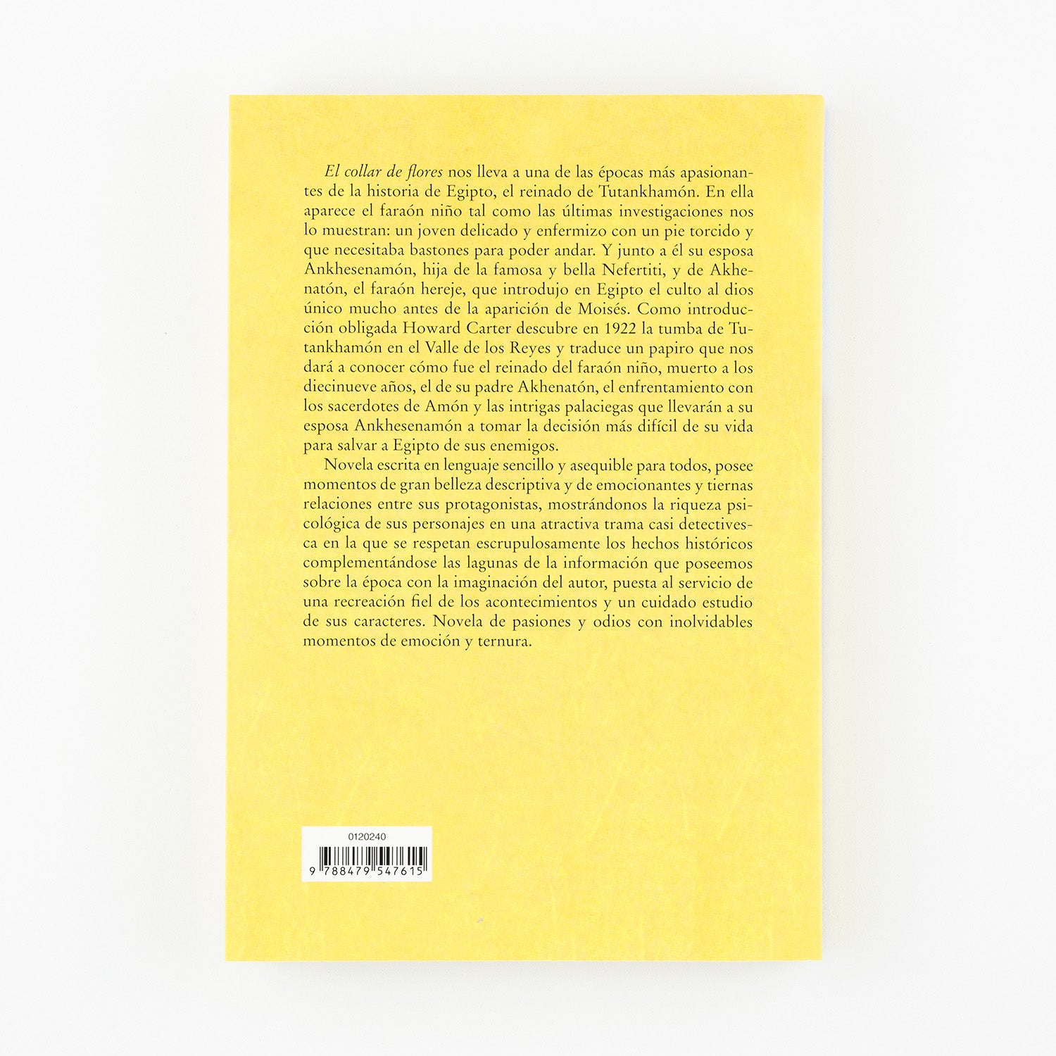 El collar de flores nos lleva a una de las épocas más apasionantes de la historia de Egipto, el reinado de Tutankhamón. En ella aparece el faraón niño tal como las últimas investigaciones nos lo muestran: un joven delicado y enfermizo con un pie torcido y que necesitaba bastones para poder andar. Y junto a él su esposa Ankhesenamón, hija de la famosa y bella Nefertiti, y de Akhenatón, el faraón hereje, que introdujo en Egipto el culto al dios único mucho antes de la aparición de Moisés. Como introducción obligada Howard Carter descubre en 1922 la tumba de Tutankhamón en el Valle de los Reyes y traduce un papiro que nos dará a conocer cómo fue el reinado del faraón niño, muerto a los diecinueve años, el de su padre Akhenatón, el enfrentamiento con los sacerdotes de Amón y las intrigas palaciegas que llevarán a su esposa Ankhesenamón a tomar la decisión más difícil de su vida para salvar a Egipto de sus enemigos.