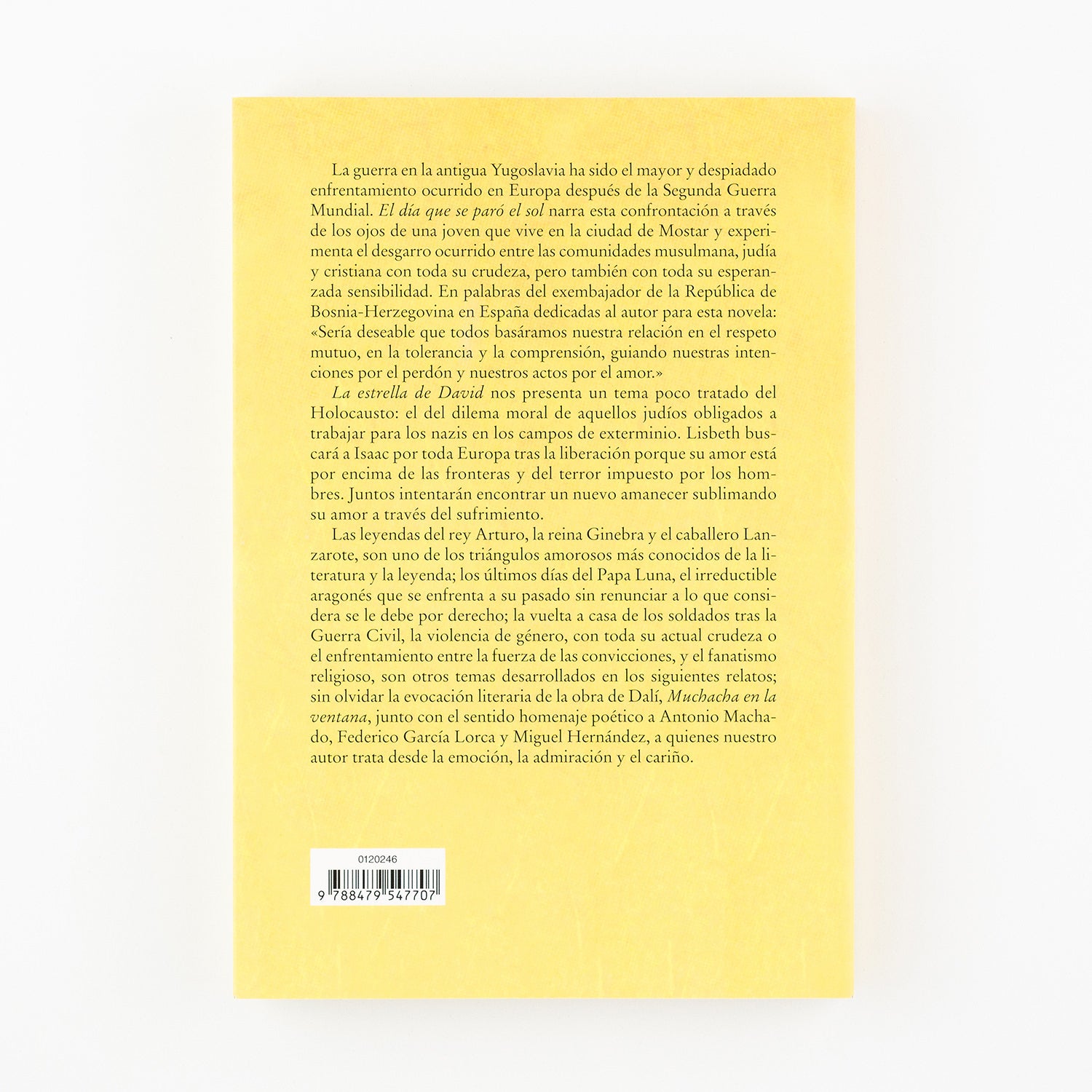 La guerra en la antigua Yugoslavia ha sido el mayor y despiadado enfrentamiento ocurrido en Europa después de la Segunda Guerra Mundial. El día que se paró el sol narra esta confrontación a través de los ojos de una joven que vive en la ciudad de Mostar y experimenta el desgarro ocurrido entre las comunidades musulmana, judía y cristiana con toda su crudeza, pero también con toda su esperanzada sensibilidad. En palabras del exembajador de la República de Bosnia-Herzegovina en España dedicadas al autor para esta novela: «Sería deseable que todos basáramos nuestra relación en el respeto mutuo, en la tolerancia y la comprensión, guiando nuestras intenciones por el perdón y nuestros actos por el amor.»
