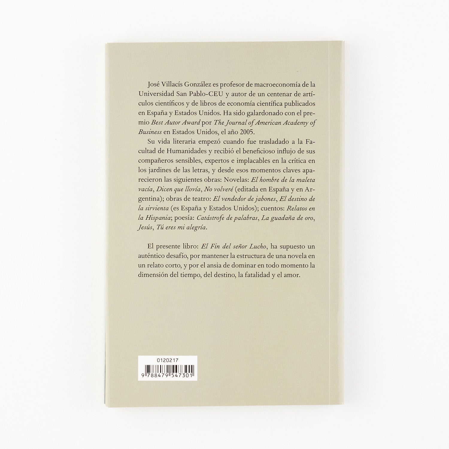 El presente libro: El fin del señor Lucho, ha supuesto un auténtico desafío, por mantener la estructura de una novela en un relato corto, y por el ansia de dominar en todo momento la dimensión del tiempo, del destino, la fatalidad y el amor.