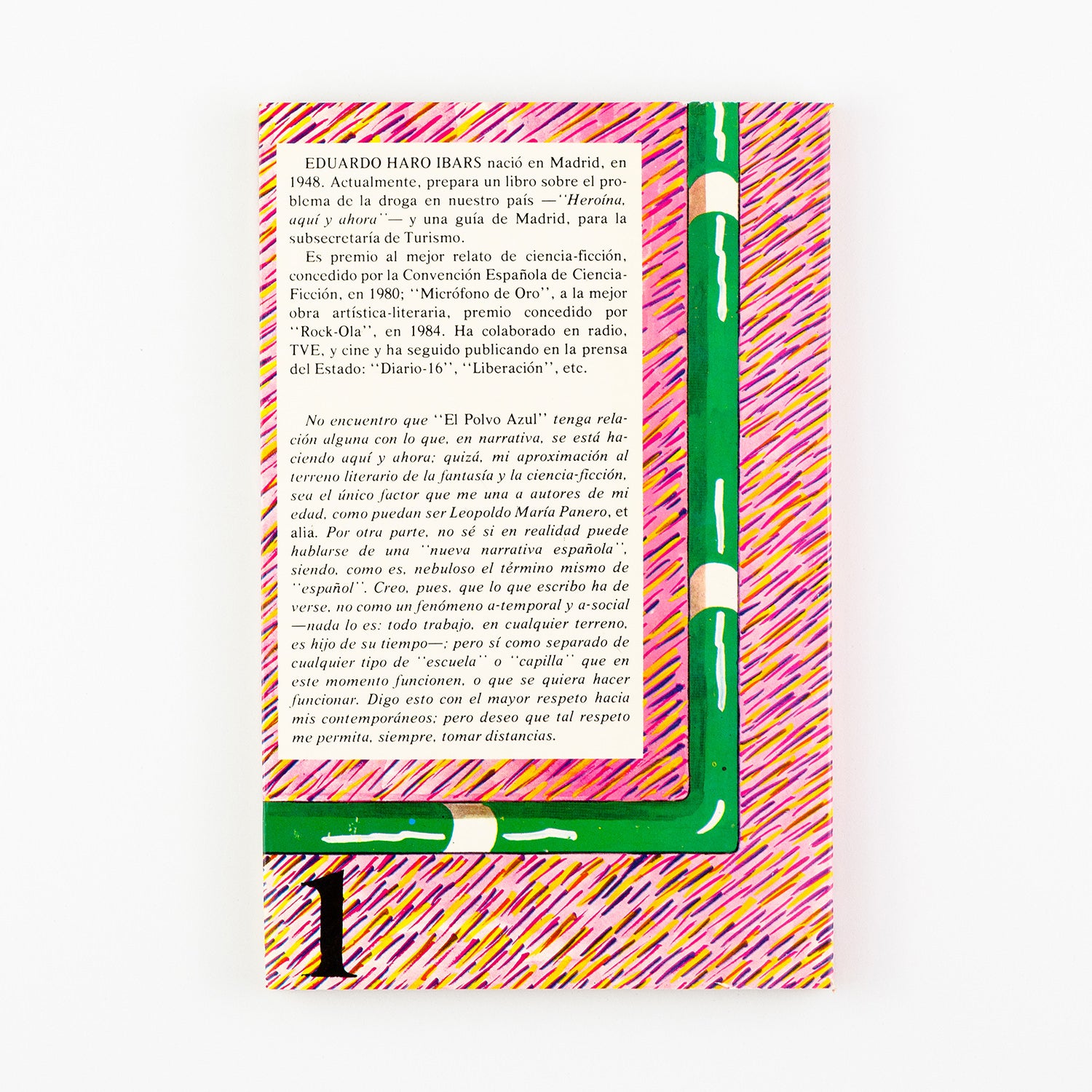 No encuentro que El polvo Azul tenga relación alguna con lo que, en narrativa, se está haciendo aquí y ahora; quizá, mi aproximación al terreno literario de la fantasía y la ciencia-ficción, ni sea el único factor que me una a autores de mi edad, como puedan ser Leopoldo María Panero, et alia. Por otra parte, no sé si en realidad puede hablarse de una "nueva narrativa española", siendo, como es, nebuloso el término mismo de "español". Creo, pues, que lo que escribo ha de verse, no como un fénomeno a-temporal y a-social -nada lo es: todo trabajo, en cualquier terreno, es hijo de su tiempo-: pero sí como separado de cualquier tipo de "escuela" o "capilla" que en este momento funcionen, o que se quiera hacer funcionar. Digo esto con el mayor respeto hacia mis contemporáneos; pero deseo que tal respeto me permita, siempre, tomar distancias.