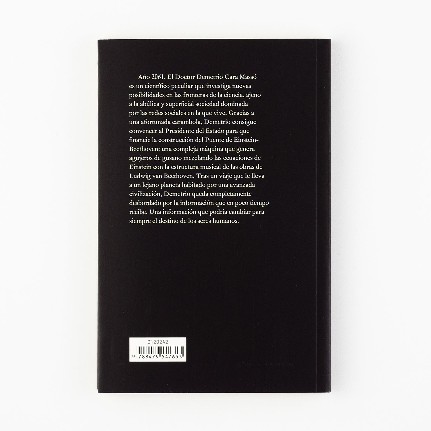 Año 2061. El Doctor Demetrio Cara Massó es un científico peculiar que investiga nuevas posibilidades en las fronteras de la ciencia, ajeno a la abúlica y superficial sociedad dominada por las redes sociales en la que vive. Gracias a una afortunada carambola, Demetrio consigue convencer al Presidente del Estado para que financie la construcción del Puente de Einstein-Beethoven: una compleja máquina que genera agujeros de gusano mezclando las ecuaciones de Einstein con la estructura musical de las obras de Ludwig van Beethoven. Tras un viaje que le lleva a un lejano planeta habitado por una avanzada civilización, Demetrio queda completamente desbordado por la información que en poco tiempo recibe. Una información que podría cambiar para siempre el destino de los seres humanos.