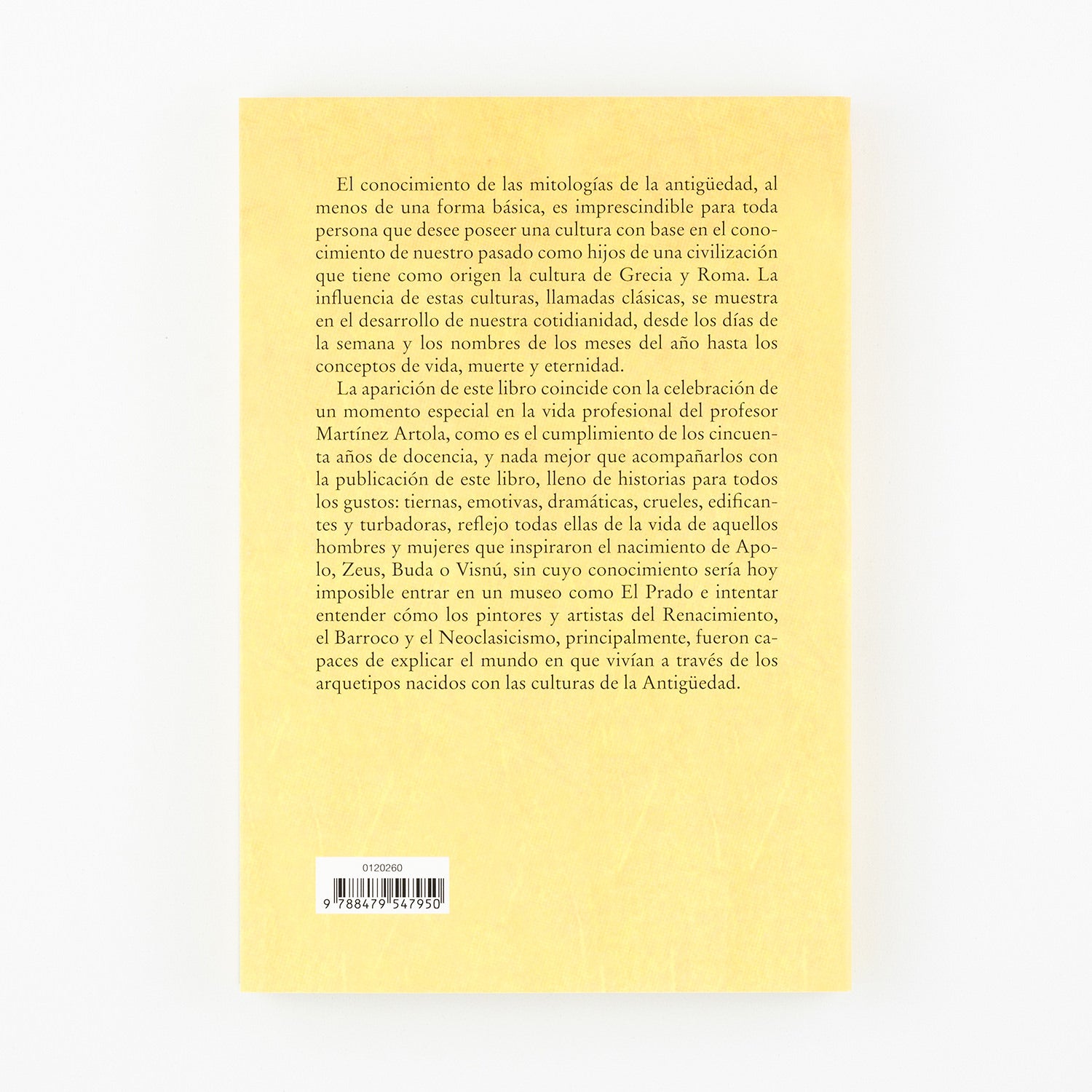 La aparición de este libro coincide con la celebración de un momento especial en la vida profesional del profesor Martínez Artola, como es el cumplimiento de los cincuenta años de docencia, y nada mejor que acompañarlos con la publicación de este libro, lleno de historias para todos los gustos: tiernas, emotivas, dramáticas, crueles, edificantes y turbadoras, reflejo todas ellas de la vida de aquellos hombres y mujeres que inspiraron el nacimiento de Apolo, Zeus, Buda o Visnú, sin cuyo conocimiento sería hoy imposible entrar en un museo como El Prado e intentar entender cómo los pintores y artistas del Renacimiento, el Barroco y el Neoclasicismo, principalmente, fueron capaces de explicar el mundo en que vivían a través de los arquetipos nacidos con las culturas de la Antigüedad.