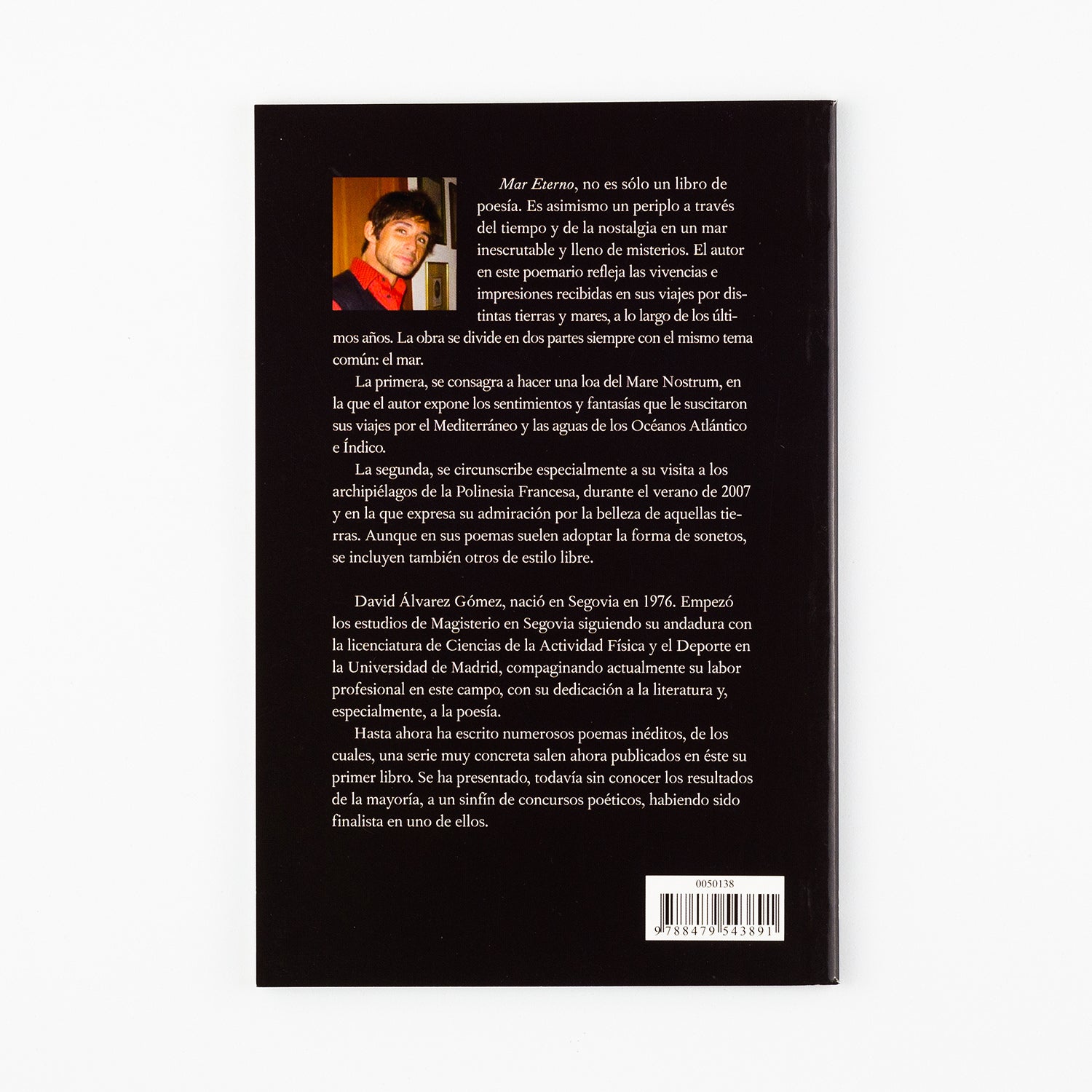 Mar Eterno, no es sólo un libro de poesía. Es asimismo un periplo a través del tiempo y de la nostalgia en un mar inescrutable y lleno de misterios. El autor en este poemario refleja las vivencias e impresiones recibidas en sus viajes por distintas tierras y mares, a lo largo de los últimos años. La obra se divide en dos partes siempre con el mismo tema común: el mar.