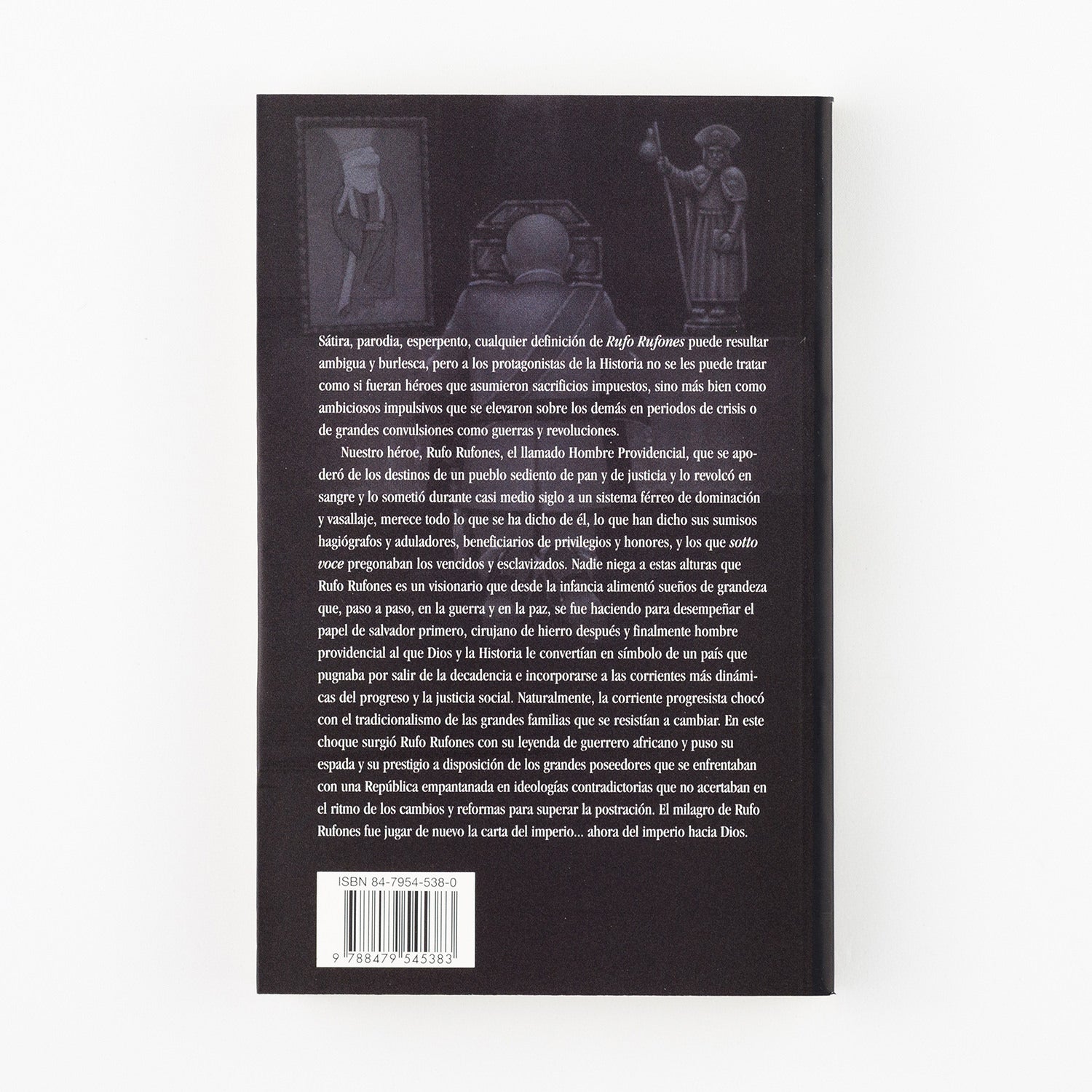 Nuestro héroe, Rufo Rufones, el llamado Hombre Providencial, que se apoderó de los destinos de un pueblo sediento de pan y de justicia y lo revolcó en sangre y lo sometió durante casi medio siglo a un sistema férreo de dominación y vasallaje, merece todo lo que se ha dicho de él, lo que han dicho sus sumisos hagiógrafos y aduladores, beneficiarios de privilegios y honores, y los que sotto voce pregonaban los vencidos y esclavizados. Nadie niega a estas alturas que Rufo Rufones es un visionario que desde la infancia alimentó sueños de grandeza que, paso a paso, en la guerra y en la paz, se fue haciendo para desempeñar el papel de salvador primero, cirujano de hierro después y finalmente hombre providencial al que Dios y la Historia le convertían en símbolo de un país que pugnaba por salir de la decadencia e incorporarse a las corrientes más dinámicas del progreso y la justicia social. Naturalmente, la corriente progresista chocó con el tradicionalismo de las grandes familias que se resistían a cambiar. En este choque surgió Rufo Rufones con su leyenda de guerrero africano y puso su espada y su prestigio a disposición de los grandes poseedores que se enfrentaban con una República empantanada en ideologías contradictorias que no acertaban en el ritmo de los cambios y reformas para superar la postración. El milagro de Rufo Rufones fue jugar de nuevo la carta del imperio... ahora del imperio hacia Dios.