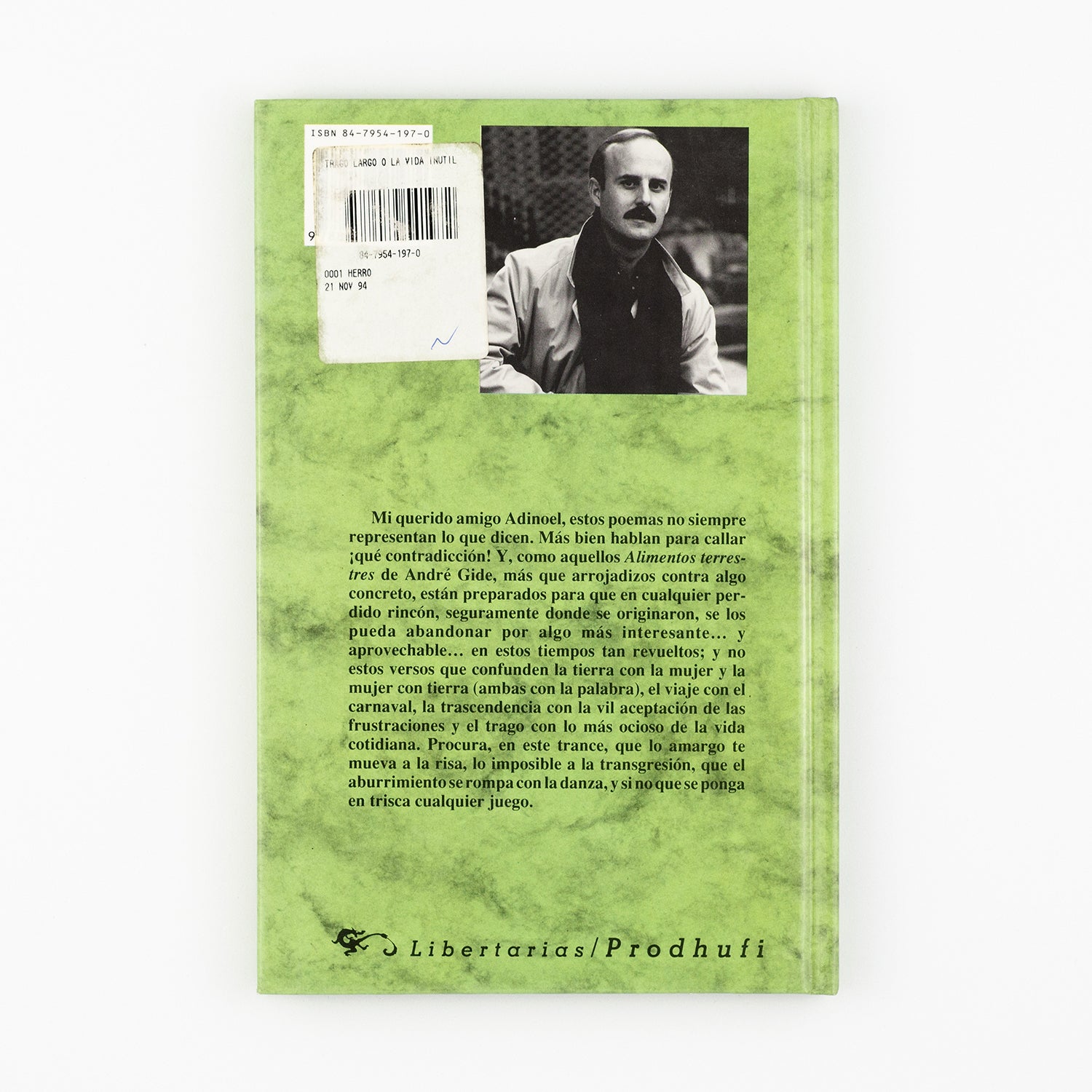 Mi querido amigo Adinoel, estos poemas no siempre representan lo que dicen. Más bien hablan para callar ¡qué contradicción! Y, como aquellos Alimentos terrestres de André Gide, más que arrojadizos contra algo concreto, están preparados para que en cualquier perdido rincón, seguramente donde se originaron, se los pueda abandonar por algo más interesante... y aprovechable... en estos tiempos tan revueltos; y no estos versos que confunden la tierra con la mujer y la mujer con la tierra (ambas con la palabra), el viaje con el carnaval, la trascendencia con la vil aceptación de las frustraciones y el trago con lo más ocioso de la vida cotidiana. Procura, en este trance, que lo amargo te mueva a la risa, lo imposible a la transgresión, que el aburrimiento se rompa con la danza, y sino que se ponga en trisca cualquier juego.