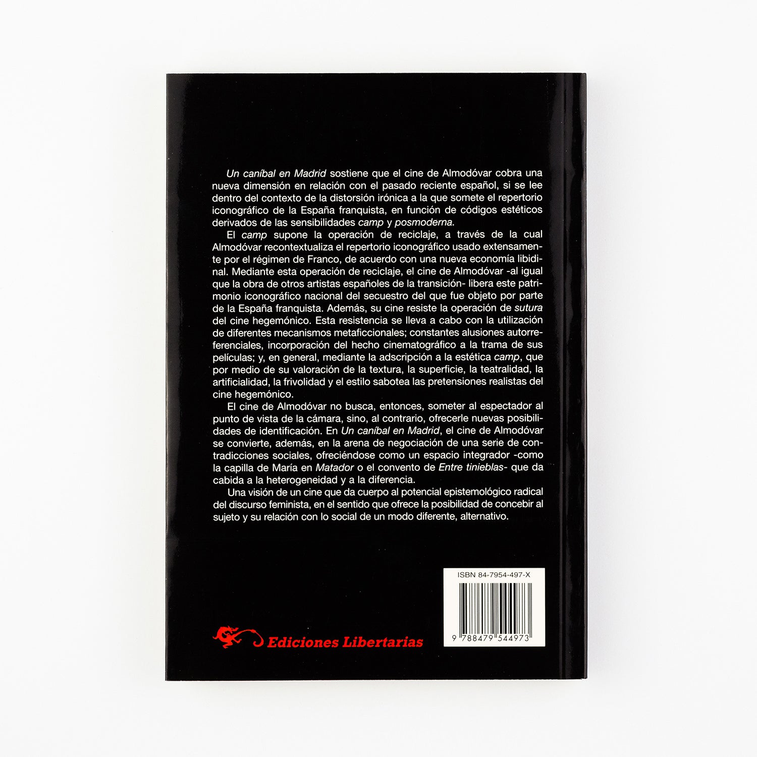 Un caníbal en Madrid sostiene que el cine de Almodóvar cobra una nueva dimensión en relación con el pasado reciente español, si se lee dentro del contexto de la distorsión irónica a la que somete el repertorio inconográfico de la España franquista, en función de códigos estéticos derivados de las sensibilidades camp supone la operación de reciclaje, a través de la cual Almodóvar recontextualiza el repertorio iconográfico usado extensamente por el régimen de Franco, de acuerdo con una nueva economía libidinal. Mediante esta operación de reciblaje, el cine de Almodóvar -al igual que la obra de otros artistas españoles de la transición- libera este patrimonio iconográfico nacional del secuestro del que fue objeto por parte de la España franquista. Además, su cine resiste la operación de sutura del cine hegemónico. Esta resistencia se lleva a cabo con la utilización de diferentes mecanismos metaficcionales; constantes alusiones autorreferenciales, incorporación del hecho cinematográfico a la trama de sus películas; y, en general, mediante la adscripción a la estética camp, que por medio de su valoración de la textura, la superficie, la teatralidad, la artificialidad, la frivolidad y el estilo sabotea las pretensiones realistas del cine hegemónico.