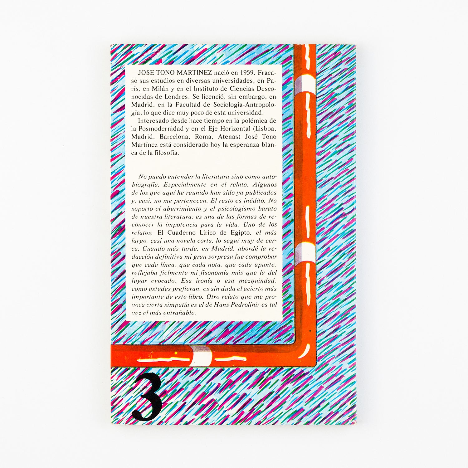 No puedo entender la literatura sino como autobiografía. Especialmente en el relato. Algunos de los que aquí he reunido han sido ya publicados y, casi, no me pertenecen. El resto es inédito. No soporto el aburrimiento y el psicologismo barato de nuestra literatura: es una de las formas de reconocer la impotencia para la vida. Uno de los relatos. El cuaderno lírico de Egipto, el más largo, casi una novela, lo seguí muy de cerca. Cuando más tarde, en Madrid, abordé la reducción definitiva mi gran sorpresa fue comprobar que cada línea, que cada nota, que cada apunte, reflejaba fielmente mi fisonomía más que la del lugar evocado. Esa ironía o esa mezquindad, como ustedes prefieran, es sin duda el acierto más importante de este libro. Otro relato que me provoca cierta simpatía es el de Hans Pedrolini; es tal vez más entrañable.